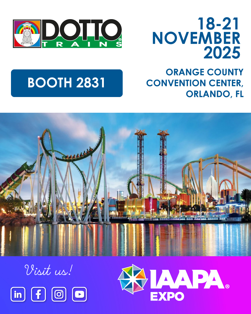 Dotto Trains a le plaisir de vous inviter à l’IAAPA EXPO Florida 2025, qui se tiendra à Orlando du 18 au 21 novembre.